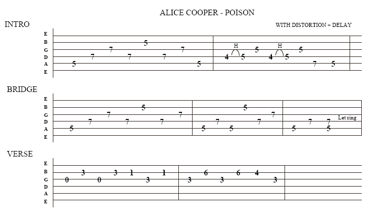 Alice Cooper's classic Poison . Make sure you use a bit of delay , aswell as distortion for this one !
