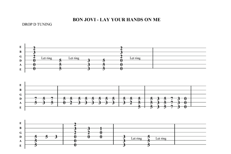 Bon Jovi - Lay your hands on me guitar tab .