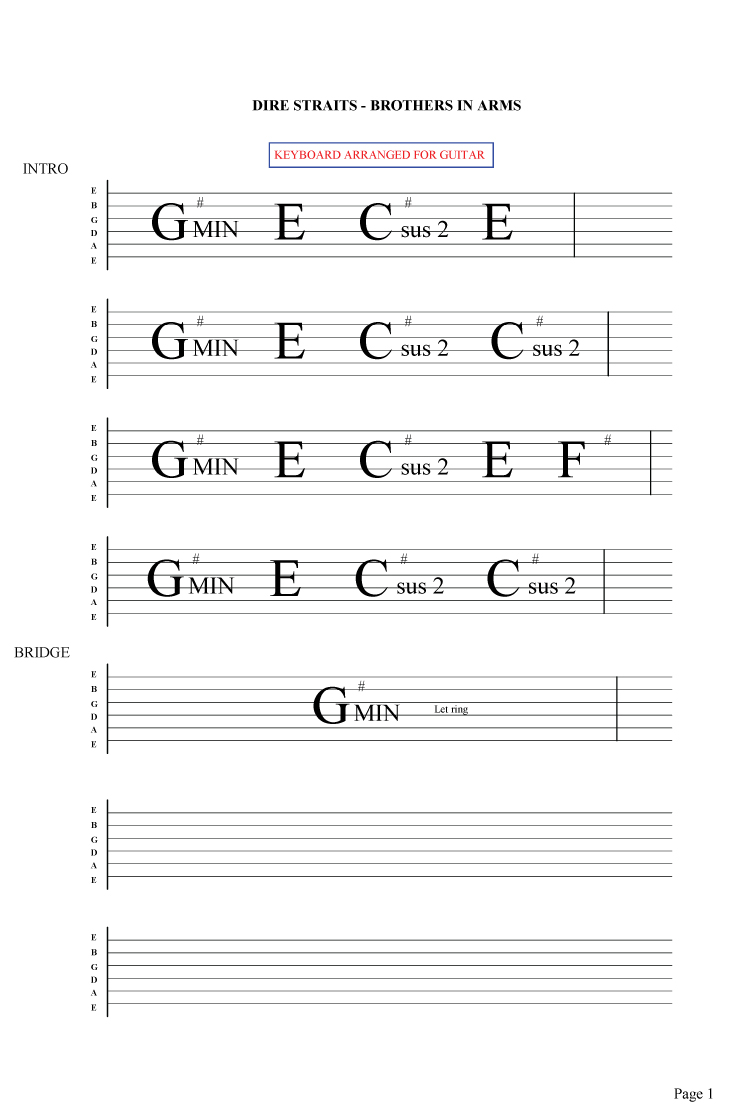 Dire Staights classic brothers in arms - Keyboard intro arranged for guitar .