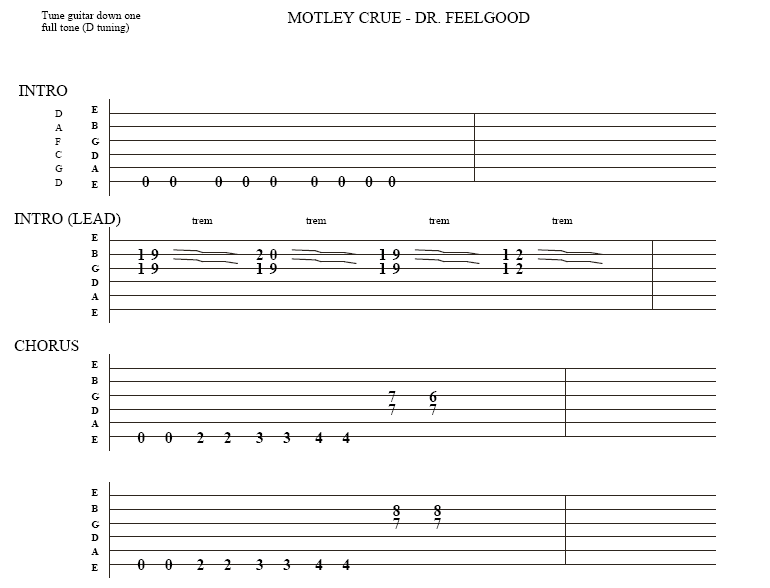 Free Motley Crue 'Dr Feelgood' guitar tab .