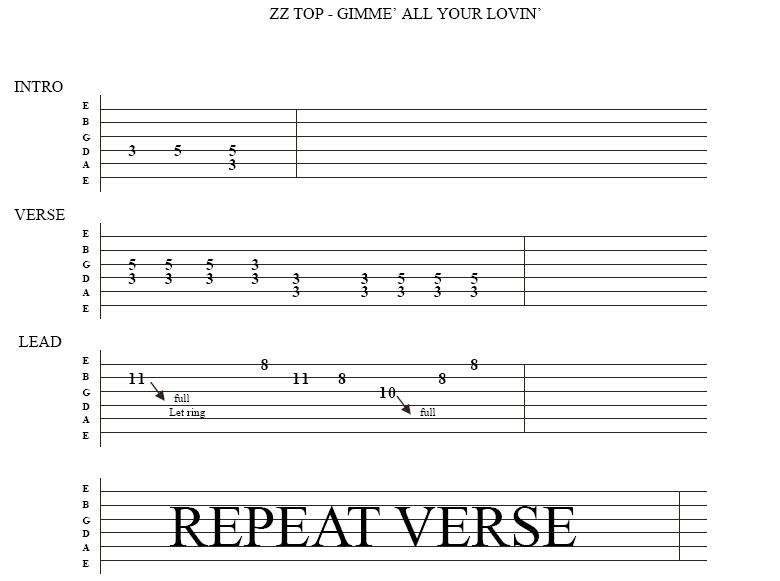 Free ZZ Top 'Gimme all your lovin' guitar tab .