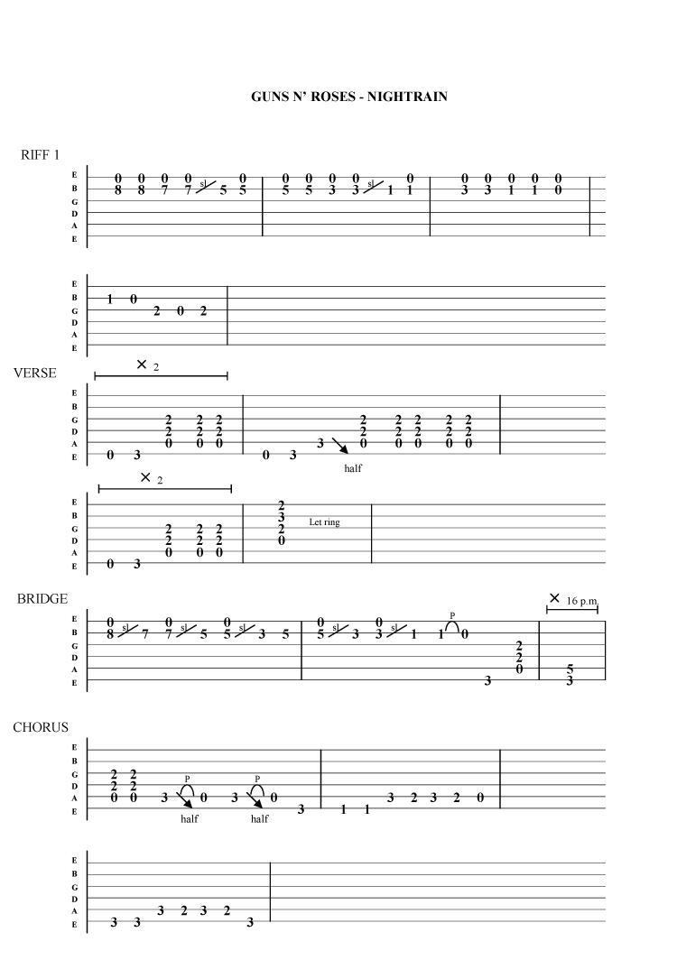 Guns n Roses - Nightrain guitar tab .