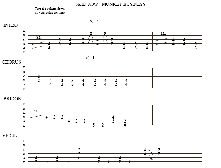 Click here for the Skid row - Monkey business video guitar lesson to go with this tab .