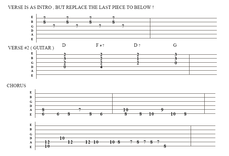 NOTE - TUNE GUITAR DOWN TO D (NOT DROP)